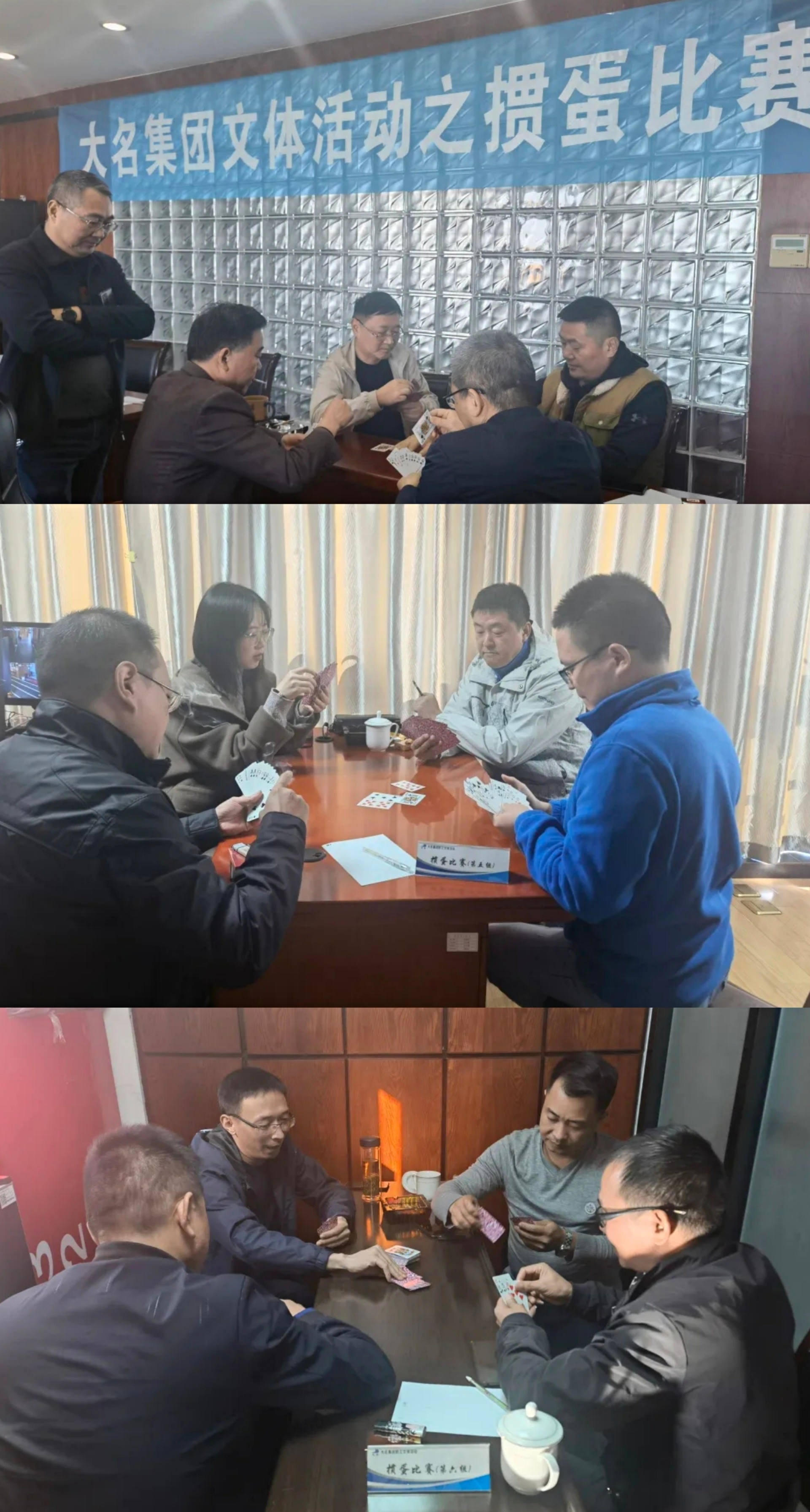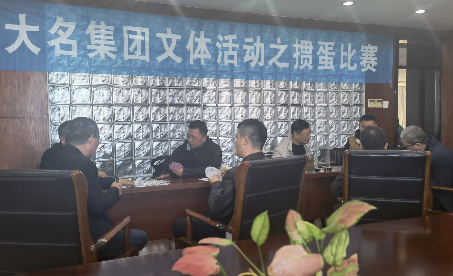 為豐富職工業(yè)余文化生活,促進(jìn)職工精神面貌提升,11月8日下午兩點(diǎn),大名集團(tuán)職工文體活動之摜蛋比賽在集團(tuán)本部會議室拉開了帷幕!大名集團(tuán)職工文體活動是由實(shí)業(yè)集團(tuán)組織實(shí)施,集團(tuán)黨支部、工會、團(tuán)委共同協(xié)助,比賽項(xiàng)目有摜蛋比賽、定點(diǎn)三分籃球、羽毛球比賽和登山比賽。最先舉行的摜蛋比賽經(jīng)各產(chǎn)業(yè)公司初賽選拔后,選出12組選手參加了此次比賽。