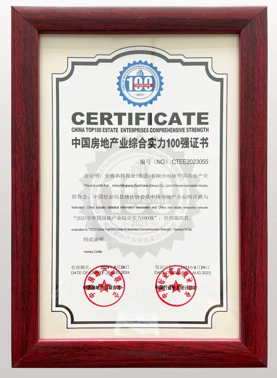 名邦地產(chǎn)榮膺“2023年中國(guó)房地產(chǎn)業(yè)綜合實(shí)力100強(qiáng)”第55位