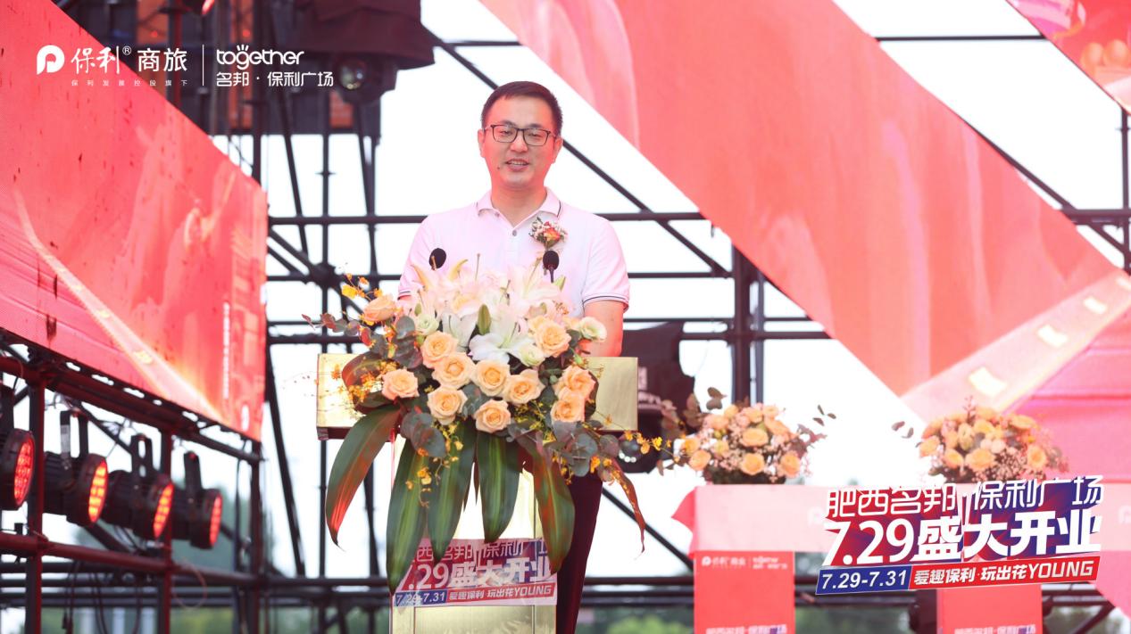 隨后,安徽名邦地產(chǎn)集團常務(wù)副總裁李寬洲登臺致辭。李總首先對蒞臨現(xiàn)場的各位領(lǐng)導(dǎo)和各界朋友致以真誠的問候,并表示:“名邦·保利廣場自籌備開業(yè)以來,在肥西縣政府親切的關(guān)懷下,在縣委縣政府及相關(guān)部門的大力支持下,在各參建、改建單位、保利商業(yè)、各品牌商家和我們的通力合作下,順利開業(yè),在此表示衷心的感謝。”