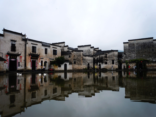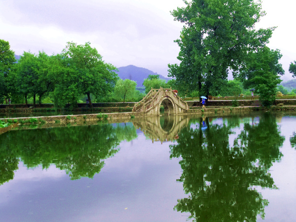 宏村,古稱弘村,位于黃山西南麓,距黃山市黟縣縣城11公里,整個(gè)村落占地30公頃。宏村是古黟桃花源里一座奇特的牛形古村落,既有山林野趣,又有水鄉(xiāng)風(fēng)貌,素有“中國(guó)畫(huà)里的鄉(xiāng)村”之美譽(yù)。村中各戶皆有水道相連,汩汩清泉從各戶潺潺流過(guò),層樓疊院與湖光山色交輝相映,處處是景,步步入畫(huà)。閑庭興步其間,悠然之情濃烈得讓人心醉。
