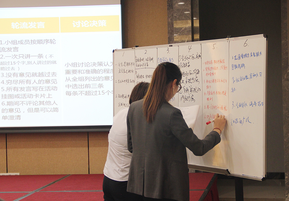 2019年5月17日-18日,為期兩天的“大名集團(tuán)管理人員TTT專場培訓(xùn)”,在集團(tuán)領(lǐng)導(dǎo)的關(guān)注和指導(dǎo)下、在全體參訓(xùn)學(xué)員的積極參與中圓滿結(jié)束。本次內(nèi)訓(xùn)邀請(qǐng)到了新安人才網(wǎng)首席培訓(xùn)師施曉菊老師作為主講老師,集團(tuán)高層管理人員及部分特邀中層管理人員近50人完成了專項(xiàng)培訓(xùn)。