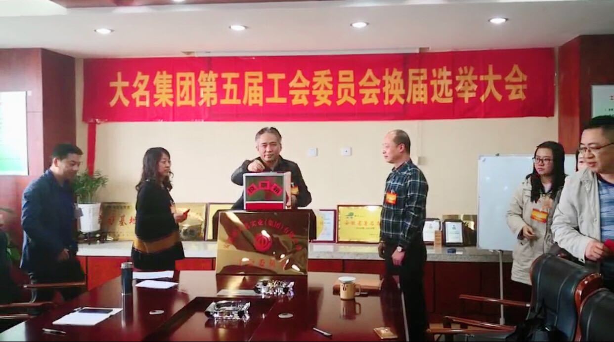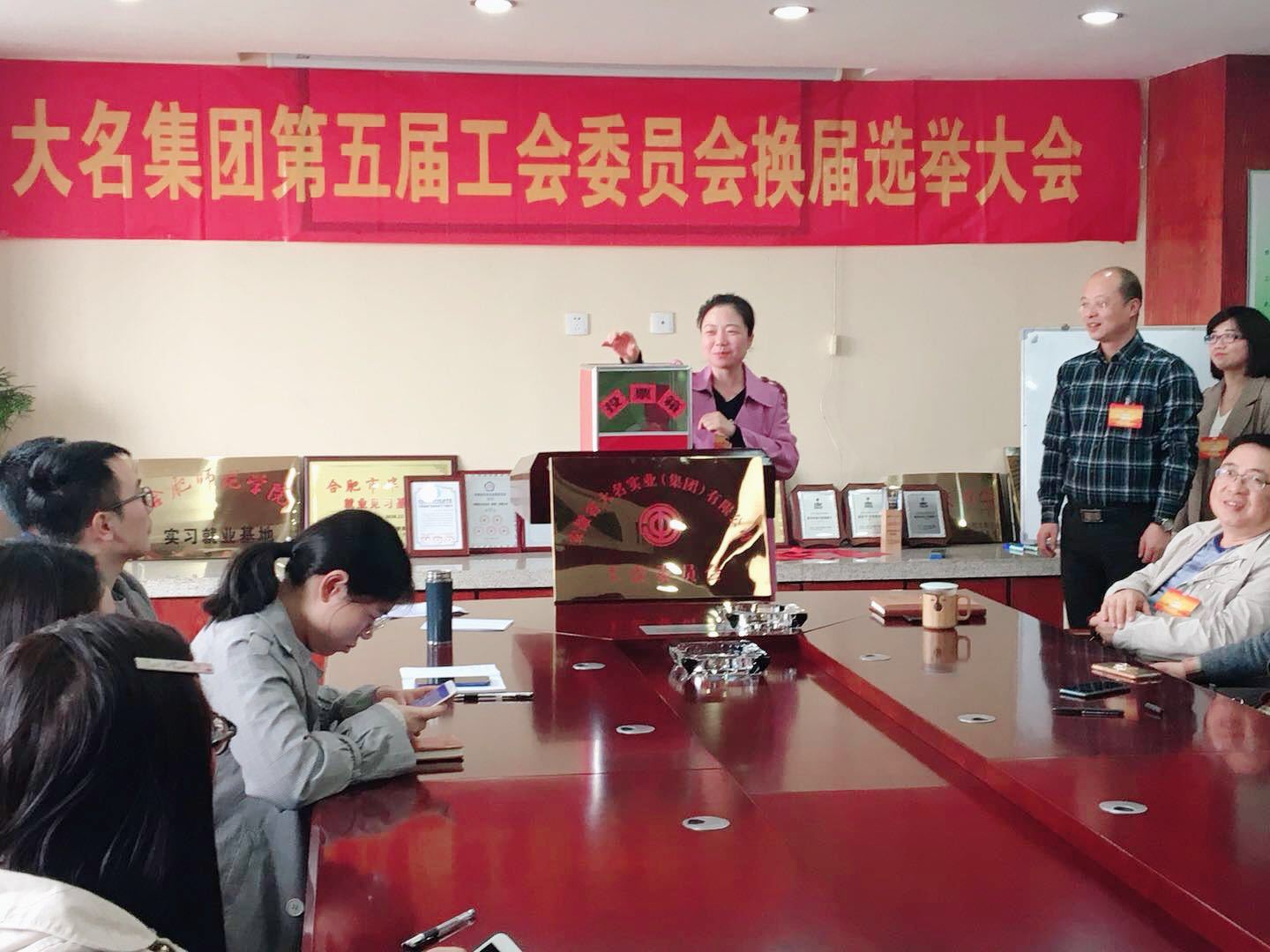 安徽省大名實業(yè)(集團)有限公司第五屆工會會員代表大會暨大名集團工會委員會換屆選舉大會,于2019年3月29日下午,在大名集團本部會議室召開,各公司工會會員代表及黨支部領導參加了此次大會。