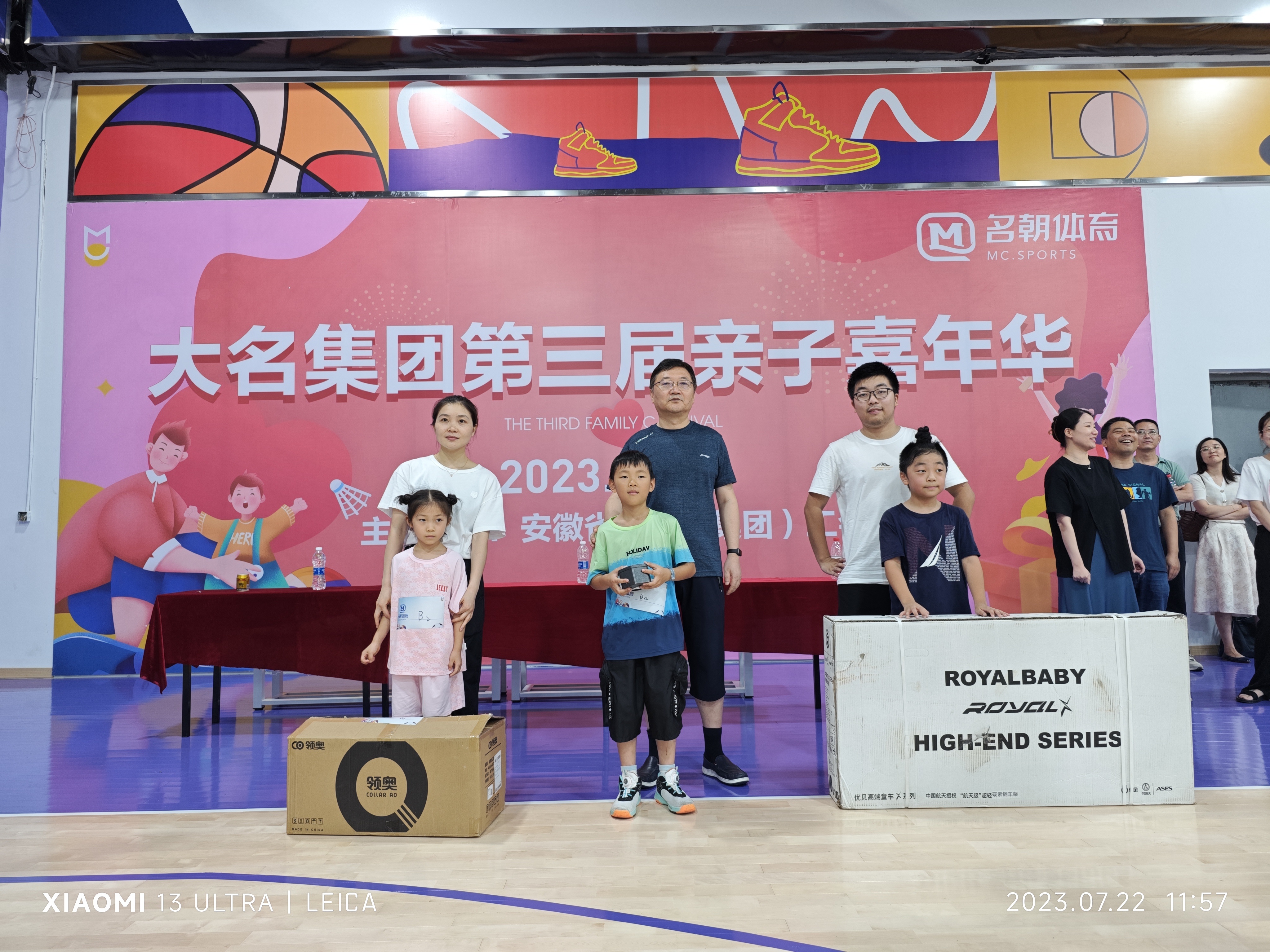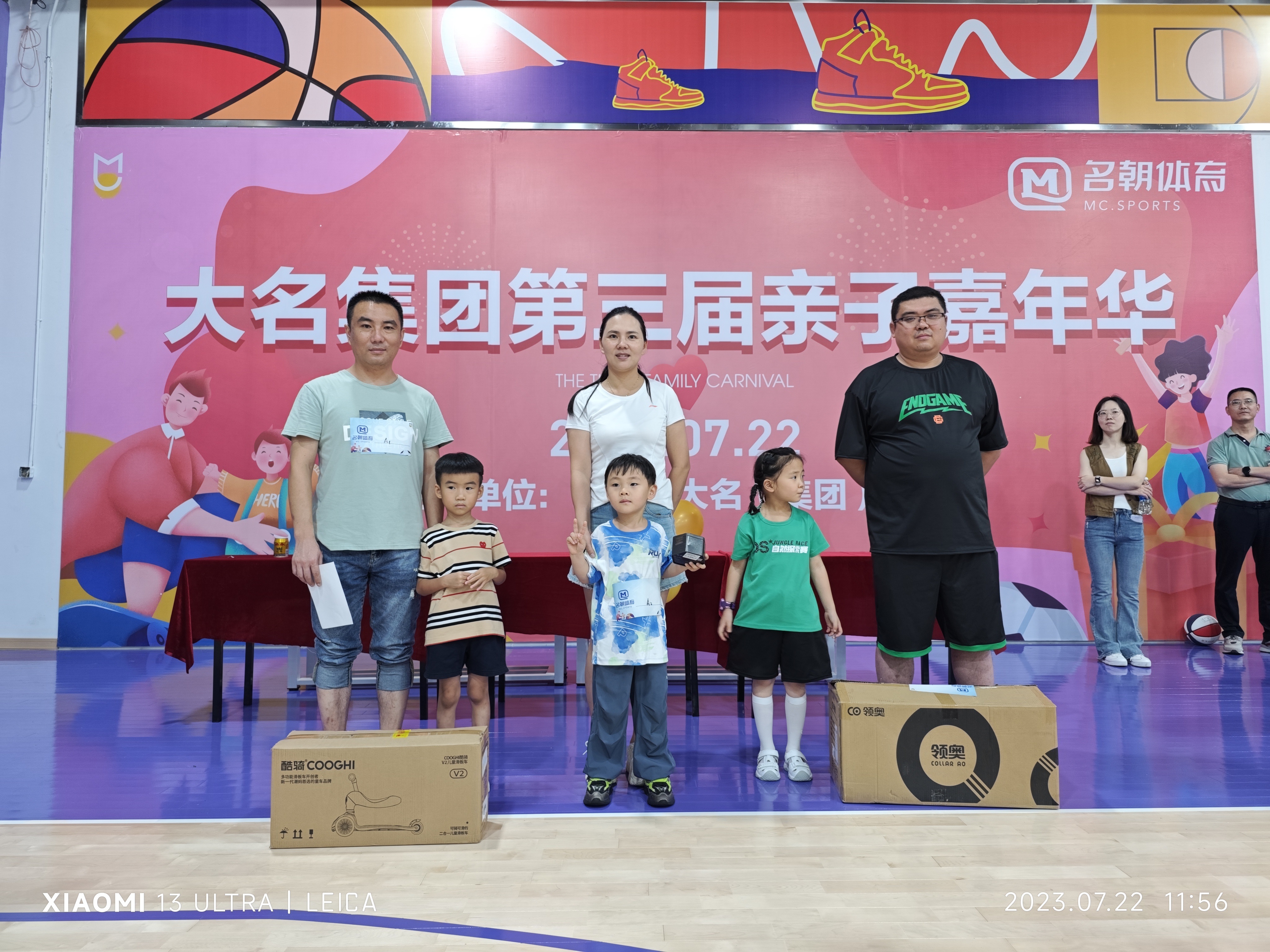 恭喜以上獲獎(jiǎng)?wù)撸∷袇①惣彝ザ极@得了一份名朝體育提供的定制紀(jì)念品。大名集團(tuán)第三屆親子嘉年華活動(dòng)取得圓滿(mǎn)成功!