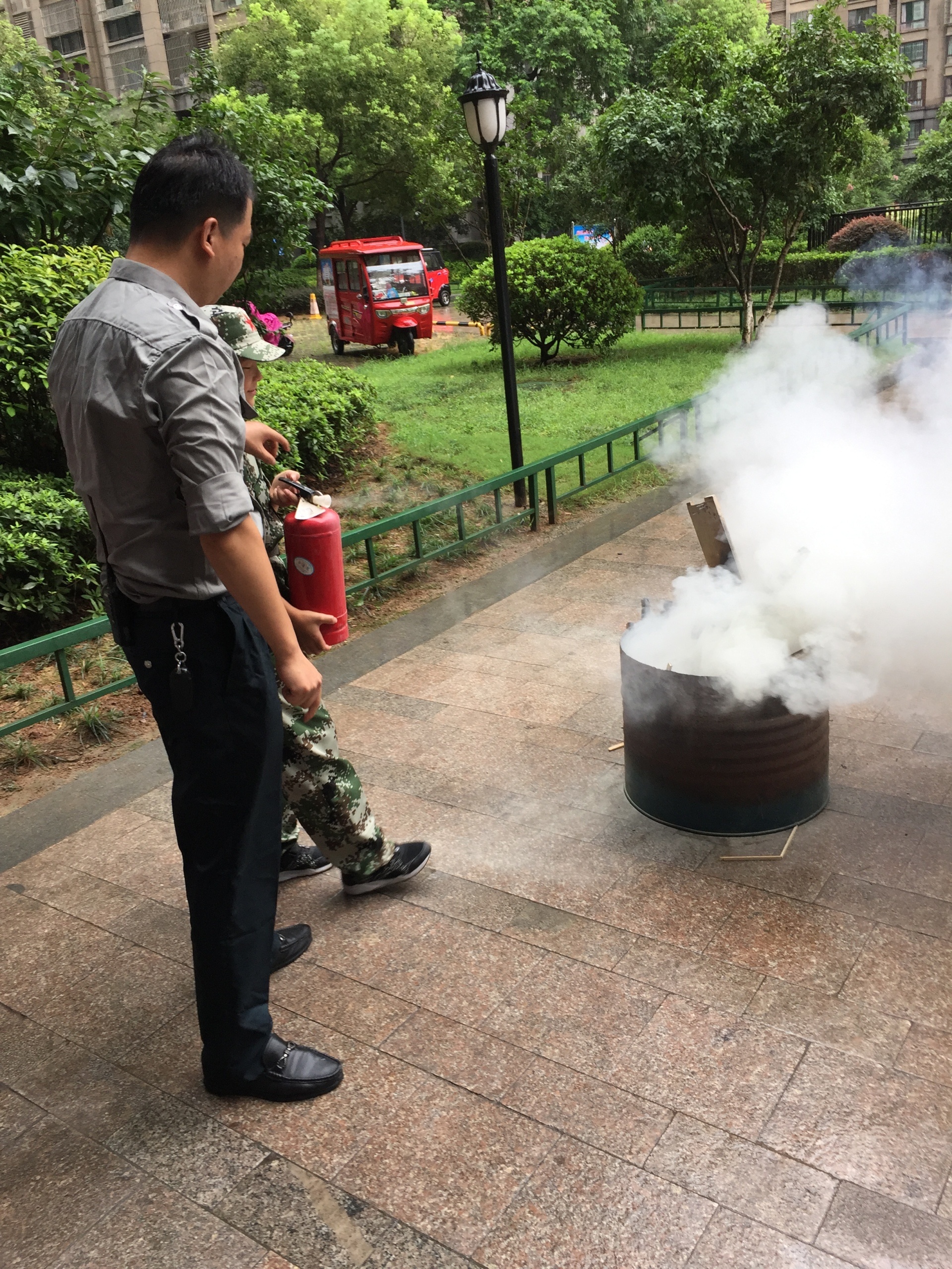 下午,物業(yè)中心工作人員帶著孩子們在小區(qū)里撿垃圾,告訴孩子們“小區(qū)是我家,環(huán)境靠大家”,讓孩子們懂得珍惜別人的勞動成果,學(xué)會感恩。之后,物業(yè)中心還對孩子和家長們進(jìn)行了滅火器培訓(xùn)及實操演示,第一次近距離接觸到滅火器的孩子們充滿著好奇和膽怯,工作人員講解完滅火常識后指導(dǎo)孩子將火苗撲滅,那一刻不僅教會了孩子如何使用滅火器,更多的是讓他們挑戰(zhàn)自我,增加孩子們的自信心。