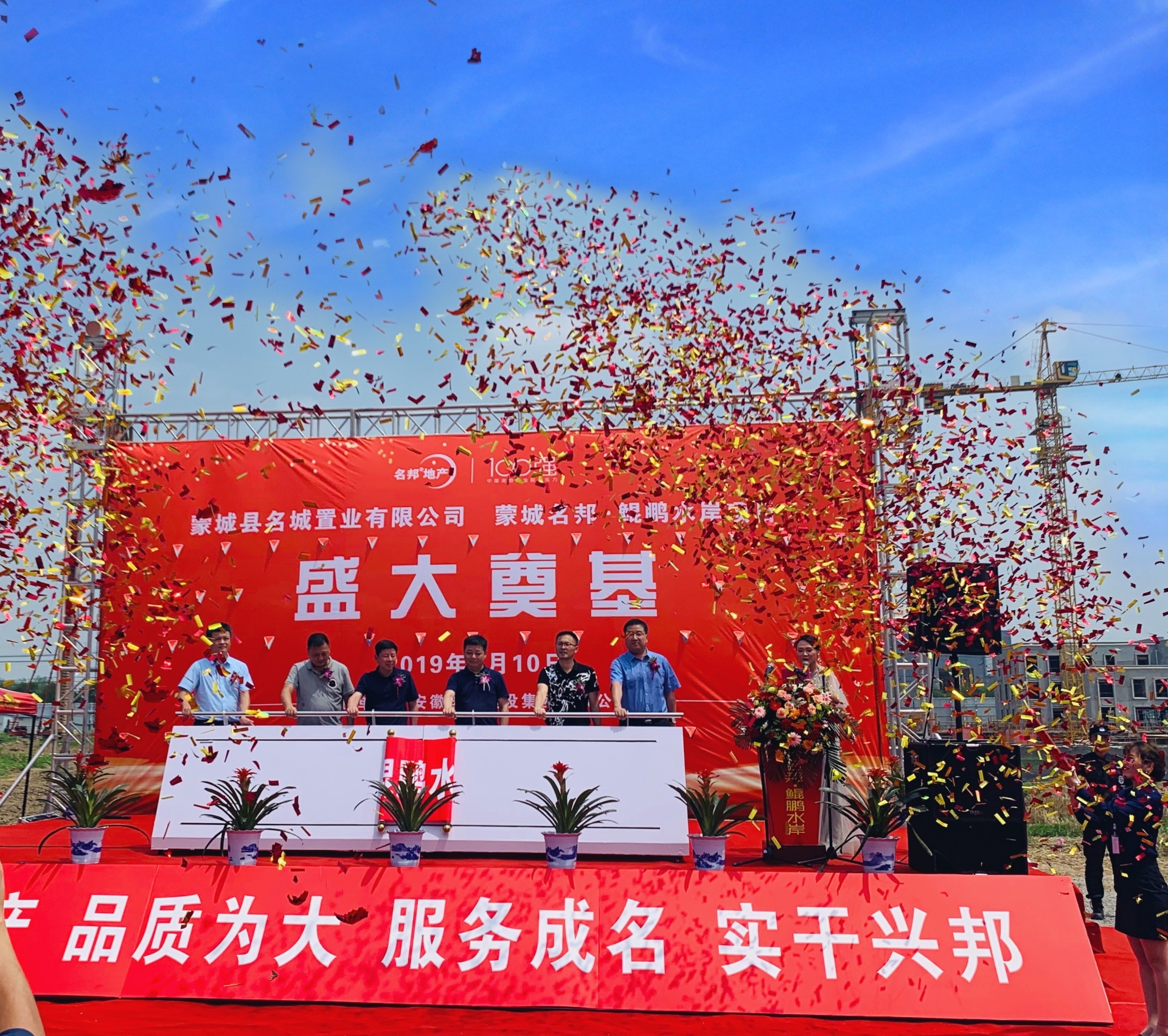 2019年7月10日,風輕云淡,草木含笑,萬眾翹首以盼的名邦·鯤鵬水岸在西部新區(qū)項目現(xiàn)場隆重舉行奠基儀式。安徽名邦地產(chǎn)集團、安徽國信建設(shè)集團、安徽中灝監(jiān)理公司等及相關(guān)開發(fā)建設(shè)單位主要負責人出席了奠基儀式。