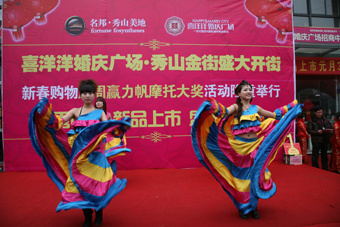 2010年元月31日,名邦·秀山美地展示中心門前彩旗飄揚(yáng),人潮涌動(dòng),名邦地產(chǎn)三喜臨門。喜洋洋婚慶廣場(chǎng)、秀山金街盛大開街了,同時(shí)也是喜洋洋婚慶廣場(chǎng)、秀山金街舉辦的新春購(gòu)物“周周贏力帆摩托大獎(jiǎng)”活動(dòng)的首周抽獎(jiǎng)(1月24日至30日在喜洋洋婚慶廣場(chǎng)、秀山金街消費(fèi)購(gòu)物的顧客們)、頒獎(jiǎng)日,名邦地產(chǎn)迎新春、推新品,秀山苑85—102平米稀缺多層花園洋房、秀山金街20—80平米稀缺沿街獨(dú)立旺鋪火爆開盤的日子。