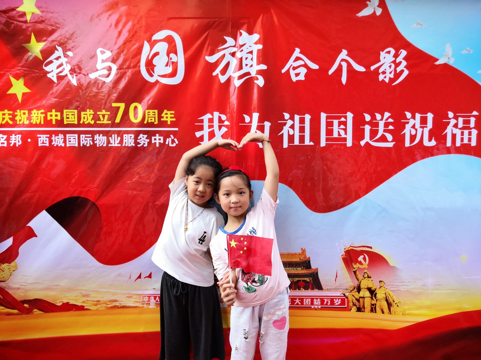 10月1日當天,名邦物業(yè)各項目不僅為小區(qū)穿上了國旗的盛裝,還為業(yè)主們放映了紅色電影,以電影記錄祖國母親70年來辛苦奮斗的過程,給業(yè)主們免費發(fā)放小紅旗及愛心國旗標貼?,F(xiàn)場還制作了“我與國旗合個影,我為祖國送祝?!钡膰毂尘澳徊?,讓每一位到場的業(yè)主都能與國旗同框,與國旗合影。無論是青蔥少年還是耄耋老人,懷著崇敬之心,以自己獨有的方式和國旗留下了美好的瞬間,表達自己對祖國的熱愛。一位帶著孩子的業(yè)主媽媽表示:“‘我與國旗合個影’活動很有教育意義,讓孩子感受到愛國熱情,一定要留影做個紀念”。其他的業(yè)主也表示:這是慶祝中華人民共和國成立七十周年最有意義的方式。