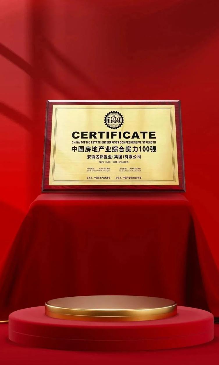 2023年12月15日,名邦地產(chǎn)集團(tuán)榮獲“2024安徽房地產(chǎn)開發(fā)企業(yè)綜合實(shí)力10強(qiáng)”(第8名)、“2024長三角房地產(chǎn)行業(yè)(安徽)服務(wù)領(lǐng)先企業(yè)”。