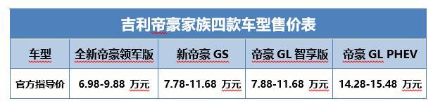 售價6.98-15.48萬元,吉利帝豪家族四款車型煥新上市