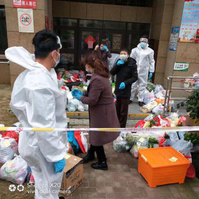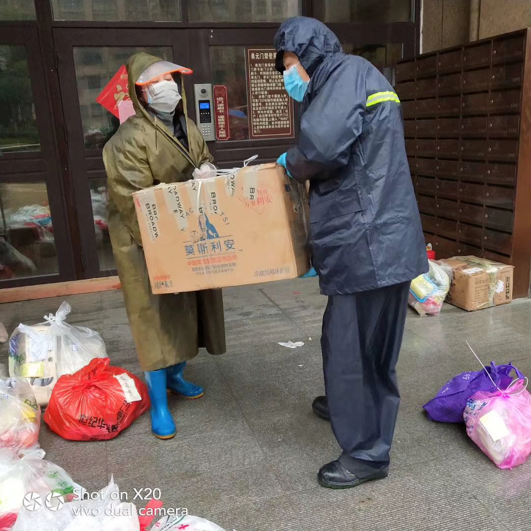 隔離業(yè)主出不了門,由社區(qū)采購(gòu)或業(yè)主自行網(wǎng)購(gòu)的物資,下午兩點(diǎn)半集中收至門崗后由專項(xiàng)責(zé)任人穿防護(hù)服、護(hù)目鏡、戴口罩每?jī)商爝M(jìn)行一次集中派送,保證業(yè)主的生活供給。近700人的生活物資,分揀派送難度、工作量可想而知,他們沒(méi)有一絲怨言,整個(gè)團(tuán)隊(duì)主動(dòng)放棄休假,一群人從白天忙到黑夜,才完成一次派送。