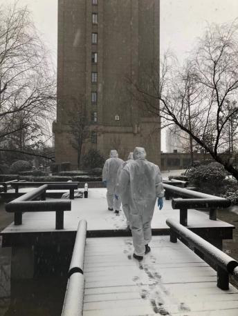 大冬天,口罩濕了、手套臟了,眼睛被汗水浸的沙沙的疼......抗疫工作小組的同事們,真的很仗義!小小的身軀蘊(yùn)藏著大大的能量,其實(shí)這個(gè)時(shí)候,他們不僅是同事,更是同甘共苦的戰(zhàn)友。
