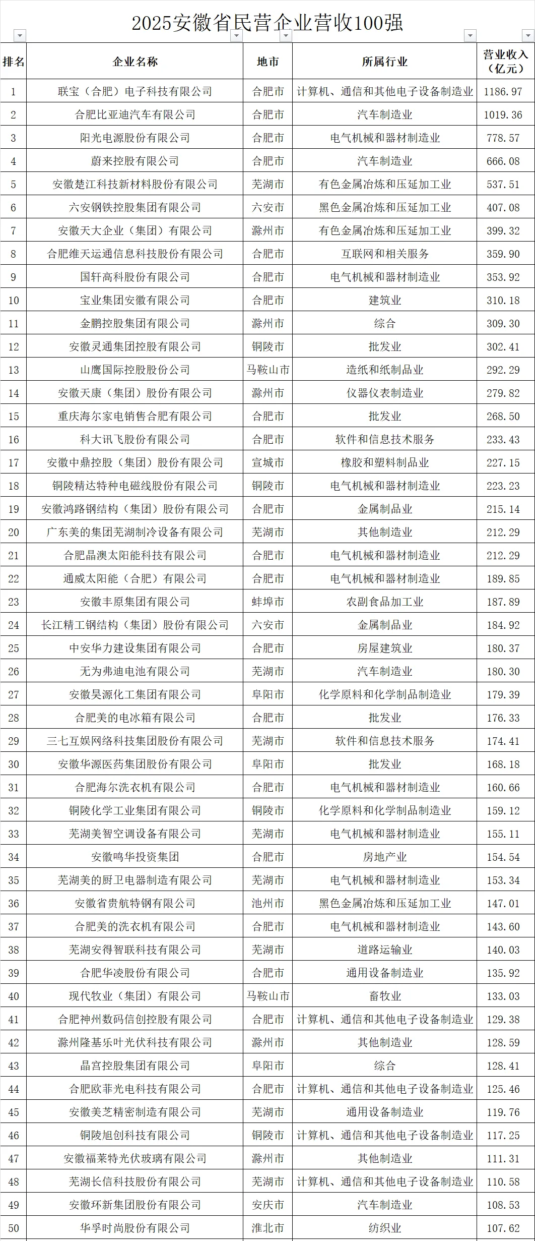 據(jù)了解,《2025安徽省民營企業(yè)百強(qiáng)分析報(bào)告》是在調(diào)研了905家營收3億元以上的民營企業(yè)基礎(chǔ)上,依據(jù)企業(yè)2024年度主要經(jīng)濟(jì)指標(biāo),經(jīng)企業(yè)申報(bào)、數(shù)據(jù)審核、部門聯(lián)核等形成。調(diào)研顯示,2025安徽省民營企業(yè)營業(yè)收入百強(qiáng)入圍門檻增至61.70億元,較上年增加0.09億元,增長0.15%。