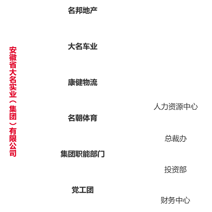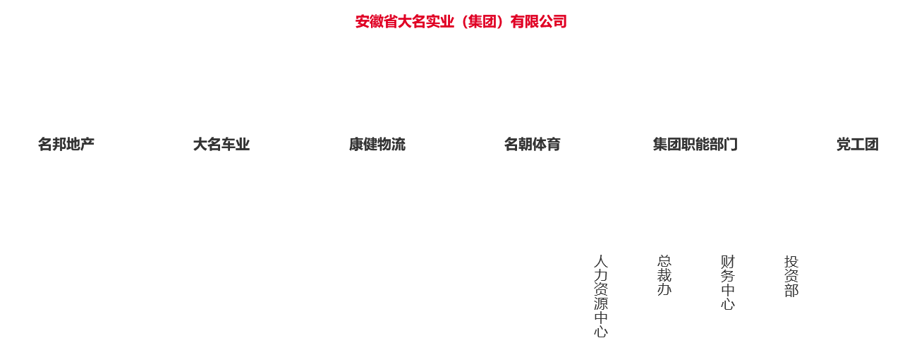 安徽省大名實(shí)業(yè)(集團(tuán))有限公司,其前身是經(jīng)安徽省體改委批準(zhǔn)設(shè)立的全省100家股份制試點(diǎn)企業(yè)之一,是集品牌代理、連鎖服務(wù)、房產(chǎn)投資開發(fā)、資本運(yùn)營及多元化發(fā)展為一體的民營股份制投資管理型企業(yè)。集團(tuán)目前主要有四大產(chǎn)業(yè):大名車業(yè)主要經(jīng)營代理品牌汽車及新能源車;名邦地產(chǎn)以房地產(chǎn)開發(fā)為業(yè)務(wù)發(fā)展主線,覆蓋營銷代理、物業(yè)管理、商業(yè)運(yùn)營、商住智能化及景觀綠化施工等產(chǎn)業(yè);物流集貨物運(yùn)輸、倉儲、配送、流通加工、包裝為一體,依托完善的運(yùn)輸網(wǎng)絡(luò)優(yōu)勢,力求提高客戶供應(yīng)鏈系統(tǒng)效率;名朝體育匯集了優(yōu)秀的教練員、運(yùn)動員、裁判員以及教務(wù)團(tuán)隊(duì)、銷售團(tuán)隊(duì),目前有七家校區(qū)和一家籃球公園,未來將有更多的校區(qū)陸續(xù)開放中。